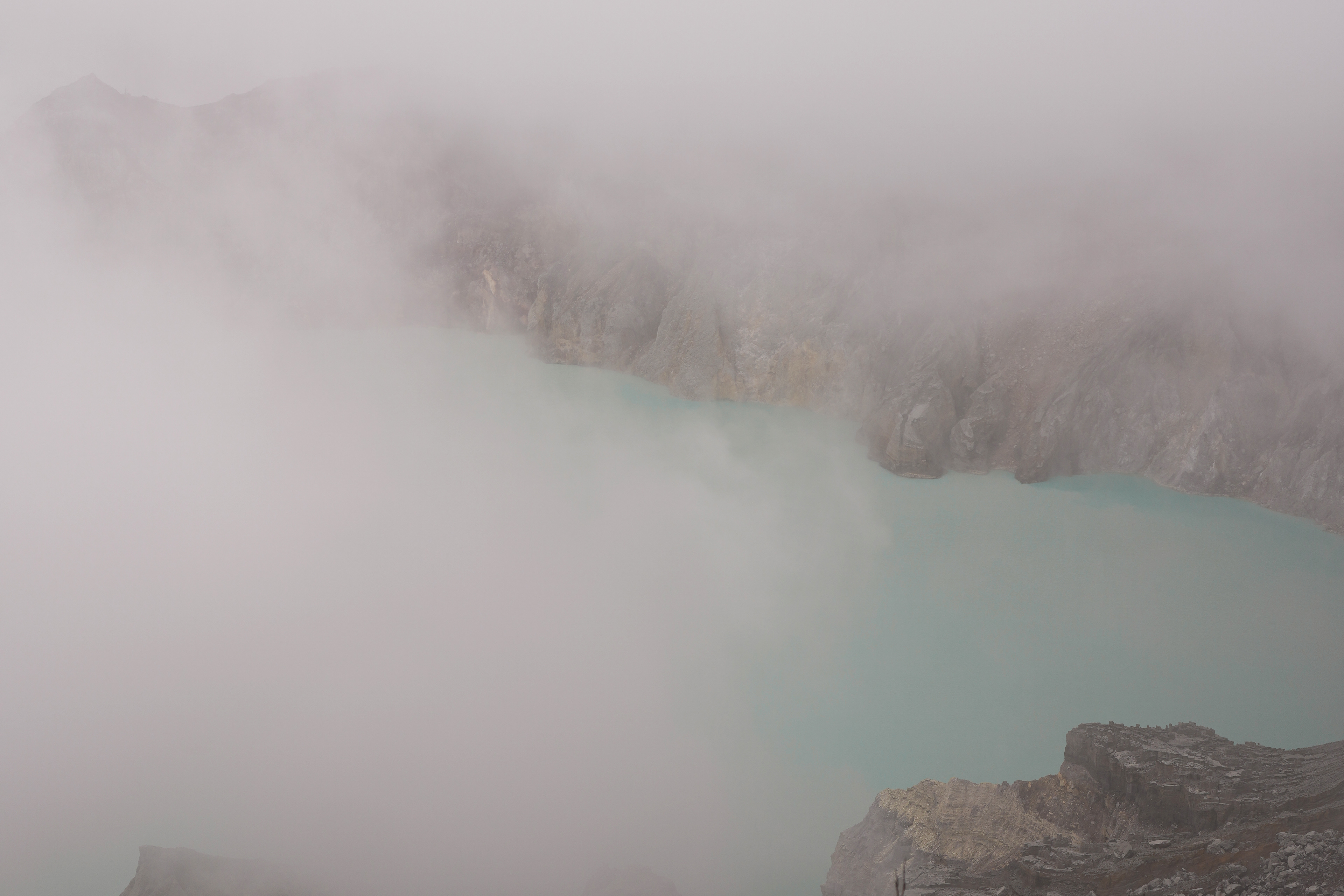 On 2769 above the sea, there is a crater lake of Ijen volcano on java island is the largest acid lake in the world. The lake's shore is a natural deposit of sulfur, which is extracted here for more than 700 years.